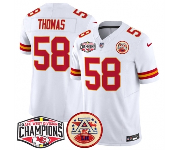 Men's Kansas City Chiefs #58 Derrick Thomas White F.U.S.E. 2024 AFC West Division Champions Vapor Limited Stitched Football Jersey