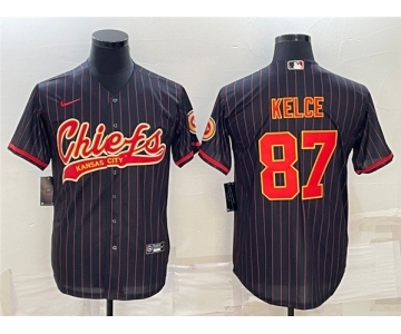 Men's Kansas City Chiefs #87 Travis Kelce Black With Patch Cool Base Stitched Baseball Jersey