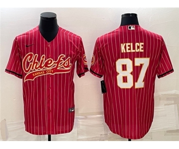 Men's Kansas City Chiefs #87 Travis Kelce Red With Patch Cool Base Stitched Baseball Jersey