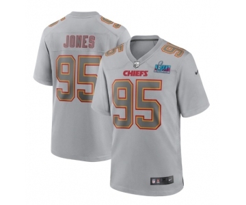 Men's Kansas City Chiefs #95 Chris Jones Gray Super Bowl LVII Patch Atmosphere Fashion Stitched Game Jersey