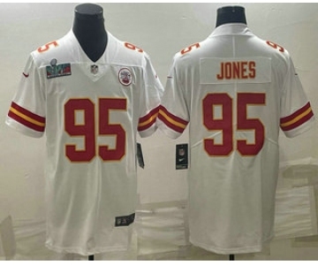Men's Kansas City Chiefs #95 Chris Jones White Super Bowl LVII Patch Vapor Untouchable Limited Stitched Jersey