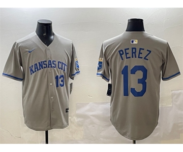 Men's Kansas City Royals #13 Salvador Perez Gray 2024 Away Limited Stitched Baseball Jersey