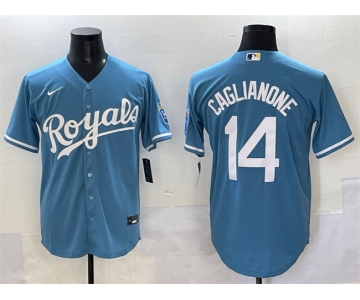 Men's Kansas City Royals #14 Jac Caglianone Light Blue Cool Base Stitched Baseball Jersey