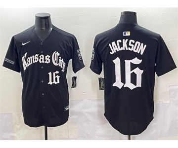 Men's Kansas City Royals #16 Bo Jackson Black 'Gothic Crown Edition' Vapor Premier Limited Stitched Baseball Jersey