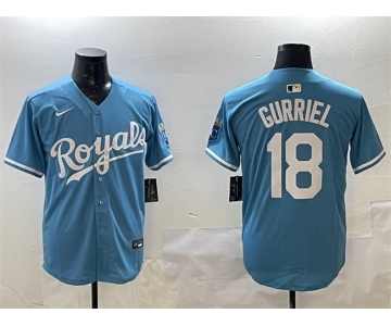 Men's Kansas City Royals #18 Yuli Gurriel Blue Cool Base Stitched Baseball Jersey