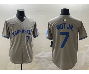 Men's Kansas City Royals #7 Bobby Witt Jr. Gray 2024 Away Limited Stitched Baseball Jersey