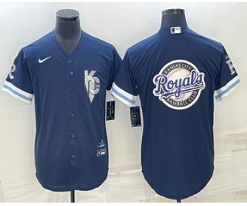 Men's Kansas City Royals Big Logo 2022 Navy Blue City Connect Cool Base Stitched Jerseys