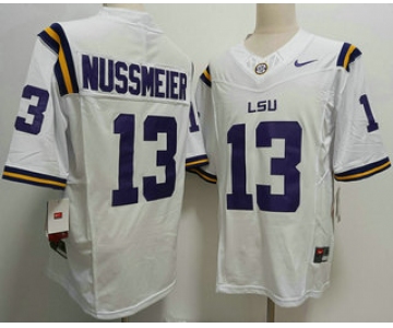 Men's LSU Tigers #13 Garrett Nussmeier White FUSE College Stitched Jersey