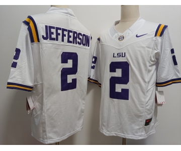 Men's LSU Tigers #2 Justin Jefferson White FUSE College Stitched Jersey