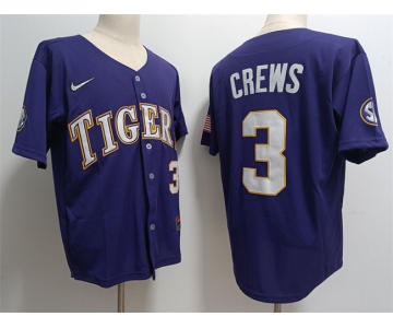 Men's LSU Tigers #3 ylan Crews Purple 2023 Stitched Baseball Jersey