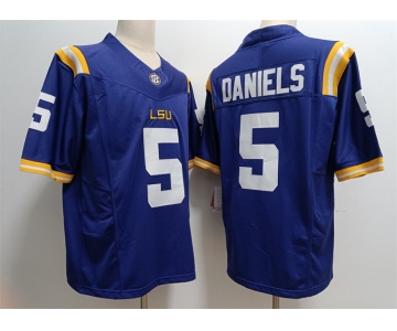 Men's LSU Tigers #5 Jayden Daniels Blue Stitched Jersey