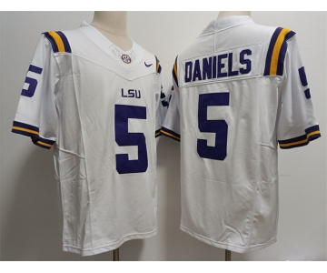 Men's LSU Tigers #5 Jayden Daniels White Stitched Jersey