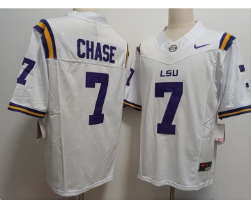 Men's LSU Tigers #7 JaMarr Chase White FUSE College Stitched Jersey