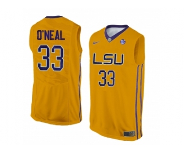 Men's LSU Tigers Shaquille O'Neal #33 College Basketball Elite Jersey - Gold