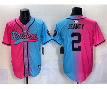 Men's Las Vegas Raiders #2 Ashton Jeanty Pink Blue Limited Stitched Baseball Jersey