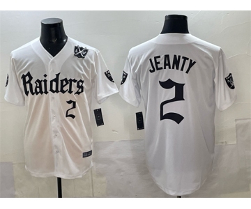 Men's Las Vegas Raiders #2 Ashton Jeanty White 'Gothic Sin City Shadows Edition' With 65th Anniversary Patch Vapor Limited Stitched Baseball Jersey