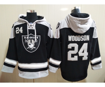 Men's Las Vegas Raiders 24 Charles Woodson NEW Black Pocket Stitched NFL Pullover Hoodie