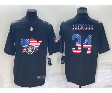 Men's Las Vegas Raiders #34 Bo Jackson 2022 USA Map Fashion Black Color Rush Stitched Nike Limited Jersey