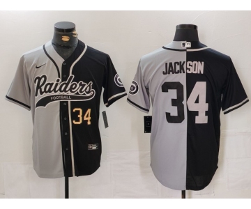 Men's Las Vegas Raiders #34 Bo Jackson Number Grey Black Split Cool Base Stitched Baseball Jersey