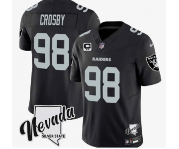 Men's Las Vegas Raiders #98 Maxx Crosby Black 2024 F.U.S.E With Nevada Silver Stat Patch And 3-Star C Patch Stitched Football Jersey