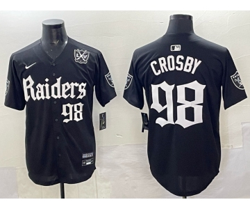 Men's Las Vegas Raiders #98 Maxx Crosby Black 'Gothic Sin City Shadows Edition' With 65th Anniversary Patch Vapor Limited Stitched Baseball Jersey
