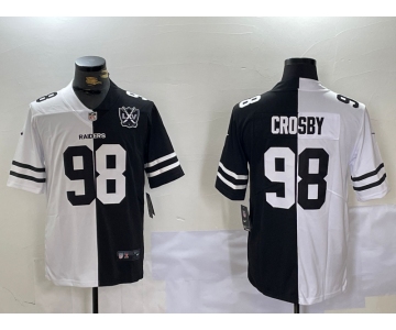 Men's Las Vegas Raiders #98 Maxx Crosby White Black 65th Patch Peaceful Coexisting Vapor Stitched Jersey