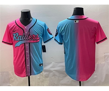 Men's Las Vegas Raiders Blank Pink Blue Limited Stitched Baseball Jersey