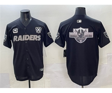 Men's Las Vegas Raiders Team Big Logo Black With Nevada Silver Stat Patch And 65th Anniversary Patch 3-Star C Patch Stitched Baseball Jersey