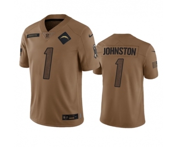 Men's Los Angeles Chargers #1 Quentin Johnston 2023 Brown Salute To Service Limited Football Stitched Jersey