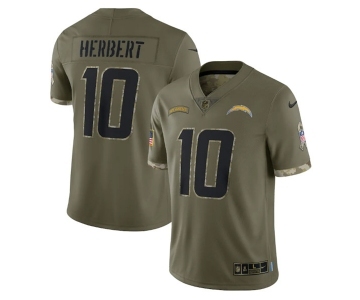 Men's Los Angeles Chargers #10 Justin Herbert 2022 Olive Salute To Service Limited Stitched Jersey