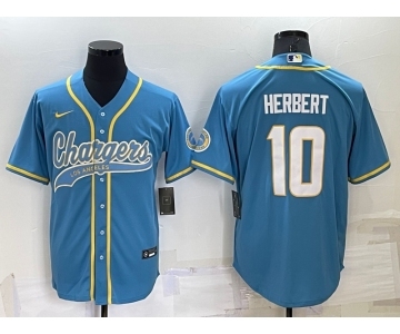 Men's Los Angeles Chargers #10 Justin Herbert Light Blue Stitched MLB Cool Base Nike Baseball Jersey