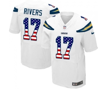 Men's Los Angeles Chargers #17 Philip Rivers Elite White Road USA Flag Fashion Football Jersey