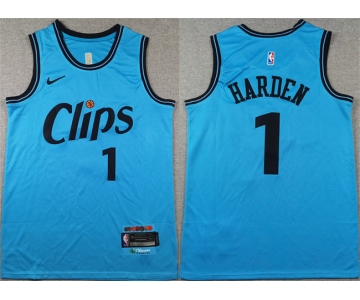 Men's Los Angeles Clippers #1 James Harden Light Blue 2024 City Edition Stitched Jersey