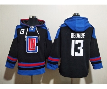 Men's Los Angeles Clippers #13 Paul George Black Blue Lace-Up Pullover Hoodie