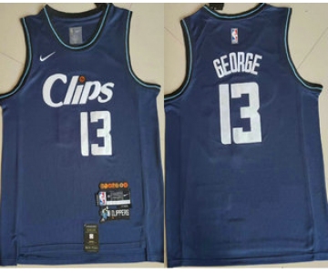 Men's Los Angeles Clippers #13 Paul George Blue 2024 City Edition Swingman Sponsor Stitched Jersey
