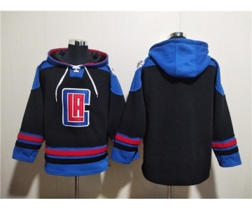 Men's Los Angeles Clippers Blank Black Blue Lace-Up Pullover Hoodie
