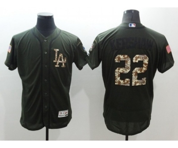Men's Los Angeles Dodger #22 Clayton Kershaw Majestic Green Salute to Service Flexbase Authentic Collection Jersey