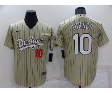 Men's Los Angeles Dodgers #10 Justin Turner Cream Pinstripe Stitched MLB Cool Base Nike Jersey