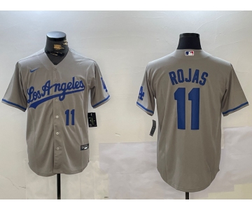 Men's Los Angeles Dodgers #11 Miguel Rojas Number Grey With los Cool Base Stitched Jerseys