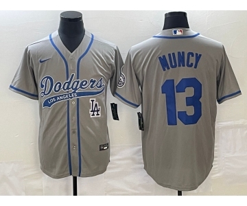 Men's Los Angeles Dodgers #13 Max Muncy Grey With Patch Cool Base Stitched Baseball Jersey1