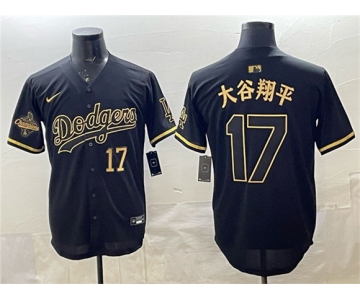 Men's Los Angeles Dodgers #17 大谷翔平 Black Gold 2025 World Series Champions Patch Limited Stitched Baseball Jersey