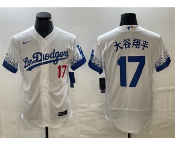 Men's Los Angeles Dodgers #17 大谷翔平 White City Connect Flex Base Stitched Baseball Jersey