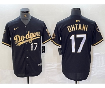 Men's Los Angeles Dodgers #17 Shohei Ohtani Number Black Gold Fashion Stitched Cool Base Limited Jersey