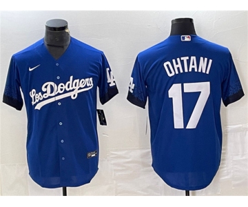 Men's Los Angeles Dodgers #17 Shohei Ohtani Royal City Connect Cool Base With Patch Stitched Baseball Jersey
