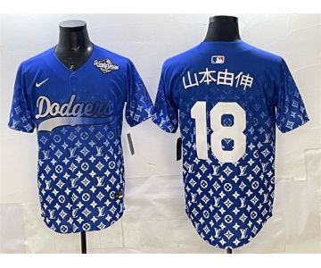 Men's Los Angeles Dodgers #18 山本由伸 Blue 2025 World Series Patch Limited Stitched Baseball Jersey