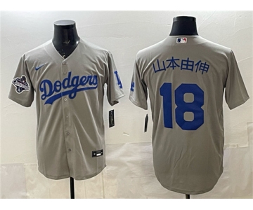 Men's Los Angeles Dodgers #18 山本由伸 Gray 2025 World Series Champions Patch Cool Base Stitched Baseball Jersey