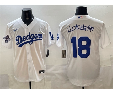 Men's Los Angeles Dodgers #18 山本由伸 White 2025 World Series Champions Patch Cool Base Stitched Baseball Jersey