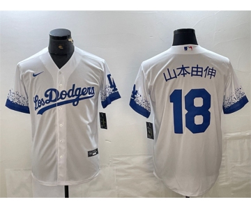 Men's Los Angeles Dodgers #18 山本由伸 White City Connect Cool Base Stitched Jersey