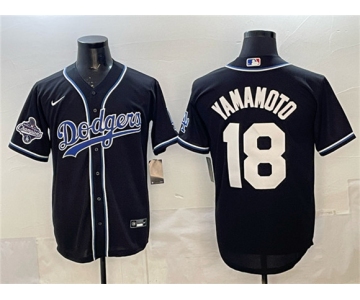 Men's Los Angeles Dodgers #18 Yoshinobu Yamamoto Black 2025 World Series Champions Patch Cool Base Stitched Baseball Jersey