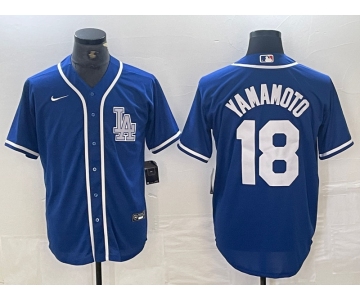 Your Position: Home>NIKE MLB Jerseys>Los Angeles Dodgers >Men>Men's Los Angeles Dodgers #18 Yoshinobu Yamamoto Blue Cool Base Stitched Baseball Jersey